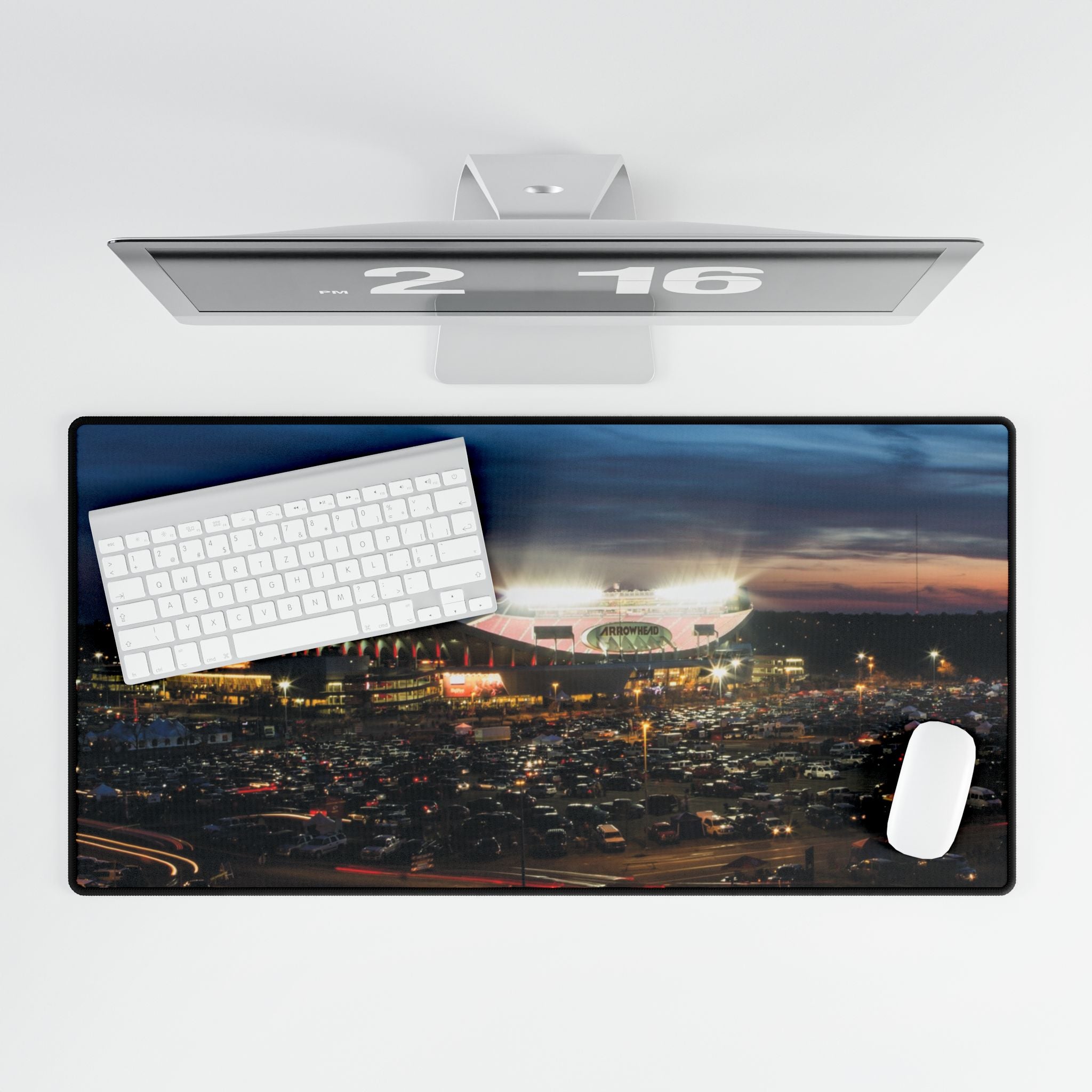 Show your love for the Kansas City Chiefs with this vibrant Mouse Pad / Desk Mat featuring Arrowhead Stadium, perfect for tailgating enthusiasts. Ideal for fans of Mahomes and Kelce, relive the excitement of the Superbowl win every time you use it. This Desk Mat is a must-have for football season and game day festivities.